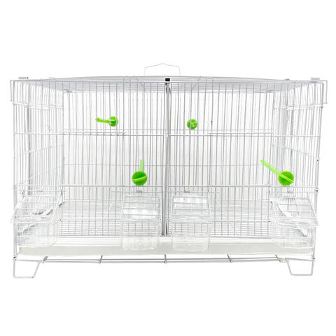 EXPOSITION CAGE, METAL FRONTAL, 3 DOORS, EXTERNAL FEEDER, DRAWER, GRID, DRAWER’S COVER.